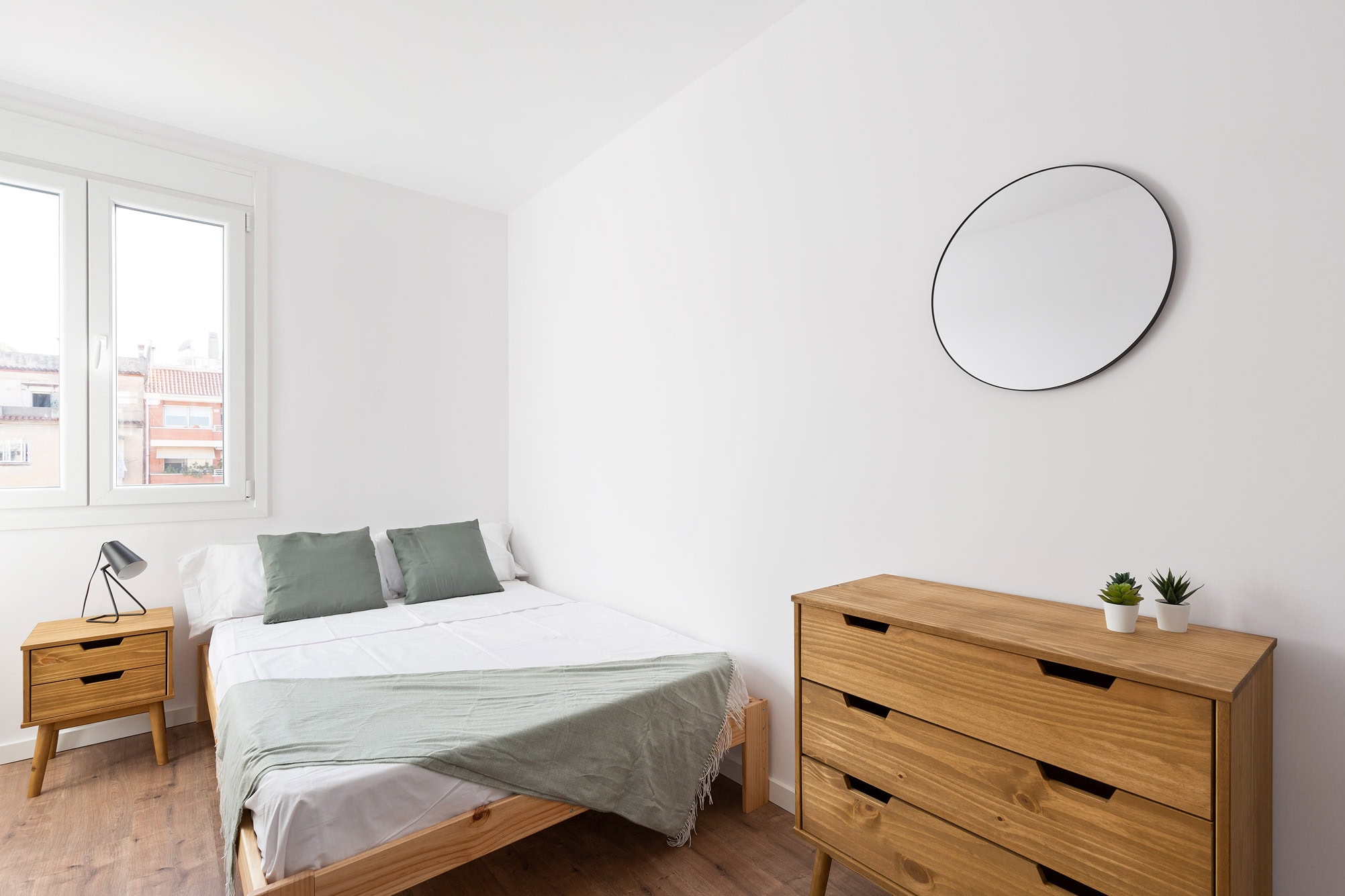 Una habitación luminosa, práctica y bien equipada, donde la luz y la calma se combinan para crear un espacio agradable y funcional.