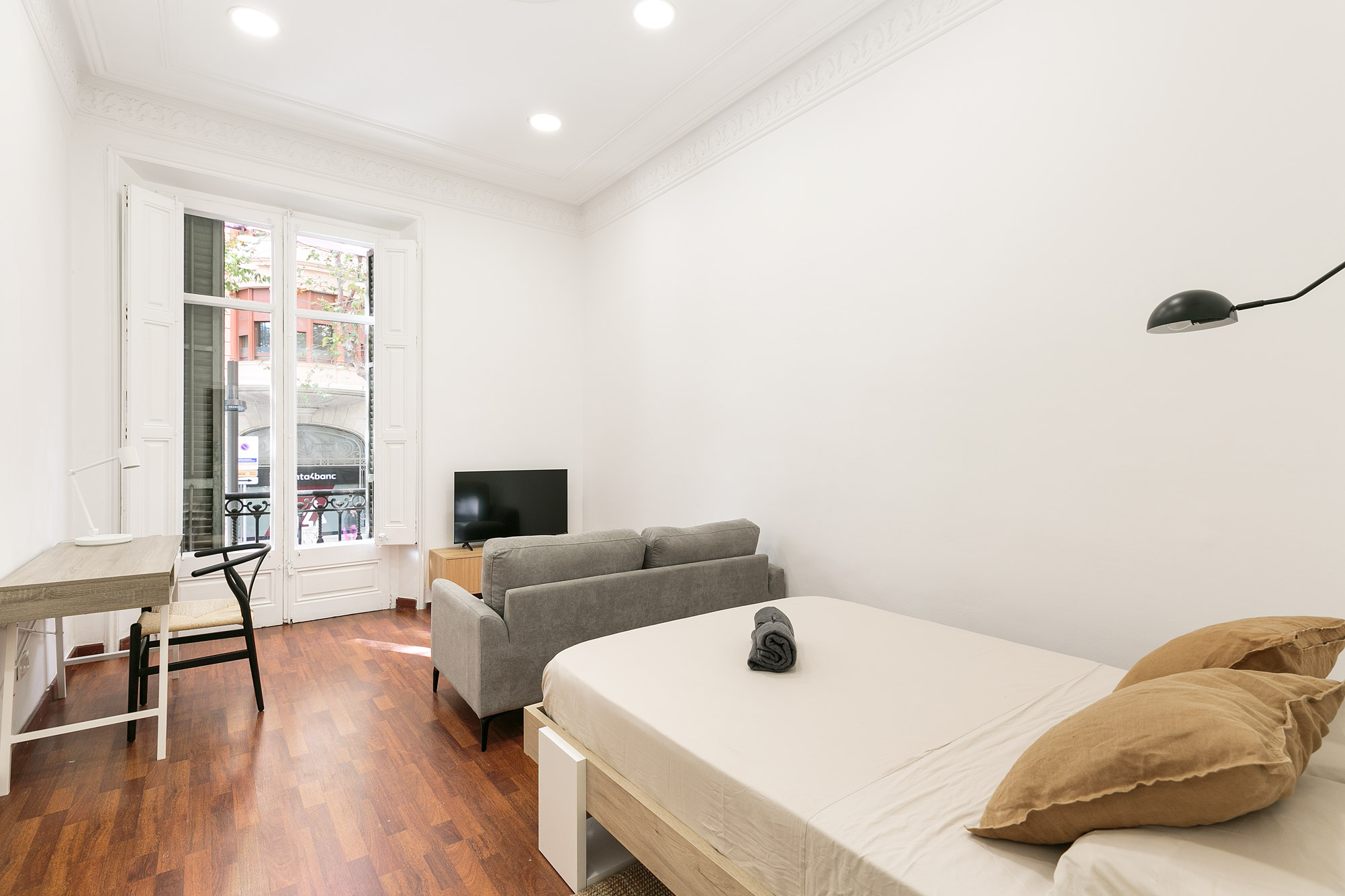 Una suite elegante, completa y llena de carácter, pensada para ofrecer un nivel superior de confort, luz y bienestar en pleno Eixample.