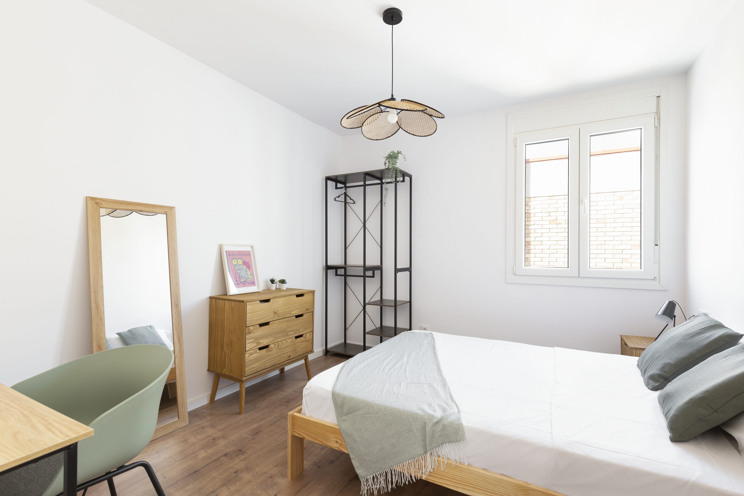 Con 16 m², esta habitación ofrece un espacio luminoso, cómodo y sereno, ideal para quienes buscan privacidad y calma dentro del coliving. Situada al fondo del piso, es la más tranquila, perfecta para descansar o concentrarte sin interrupciones.