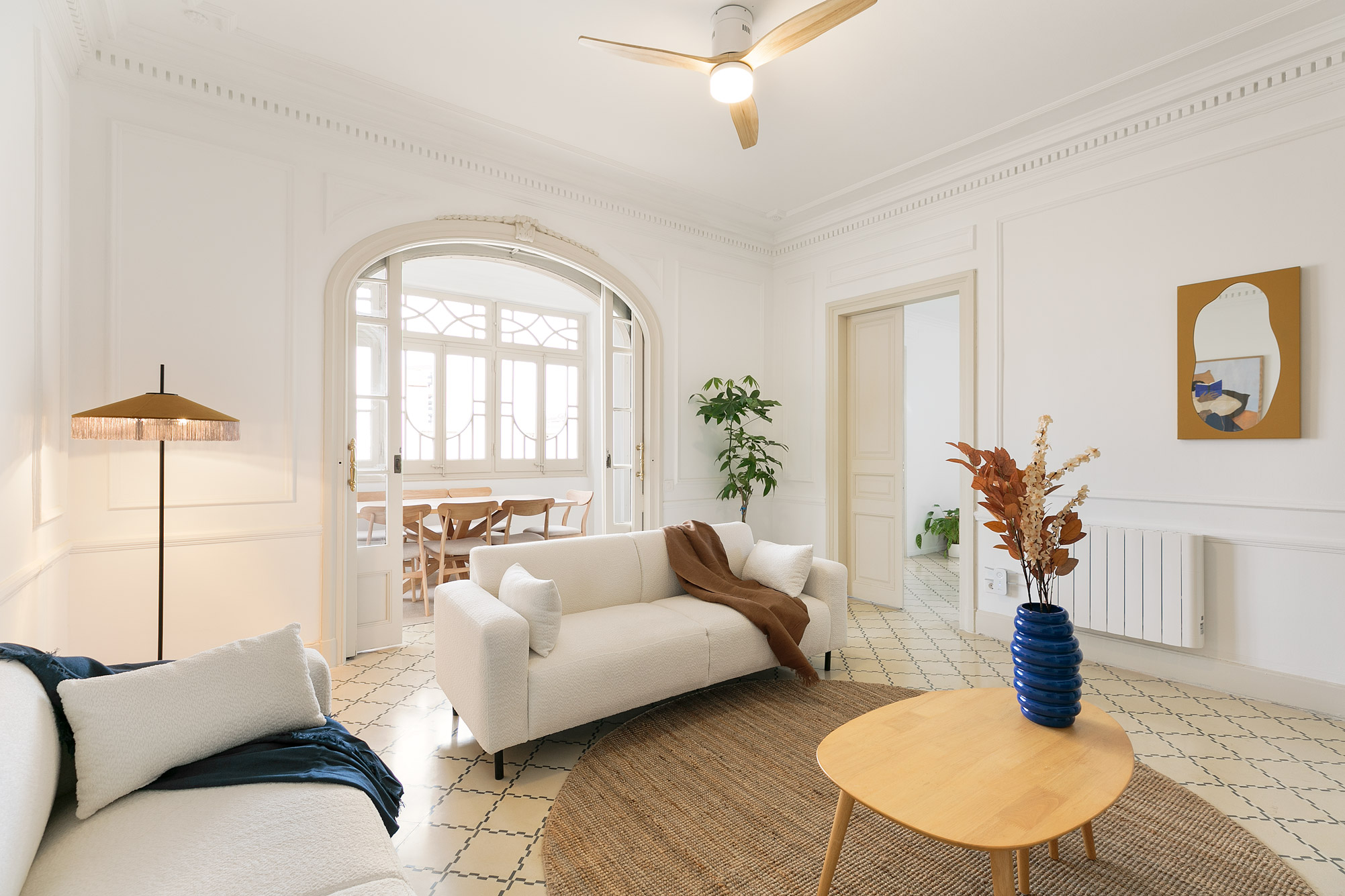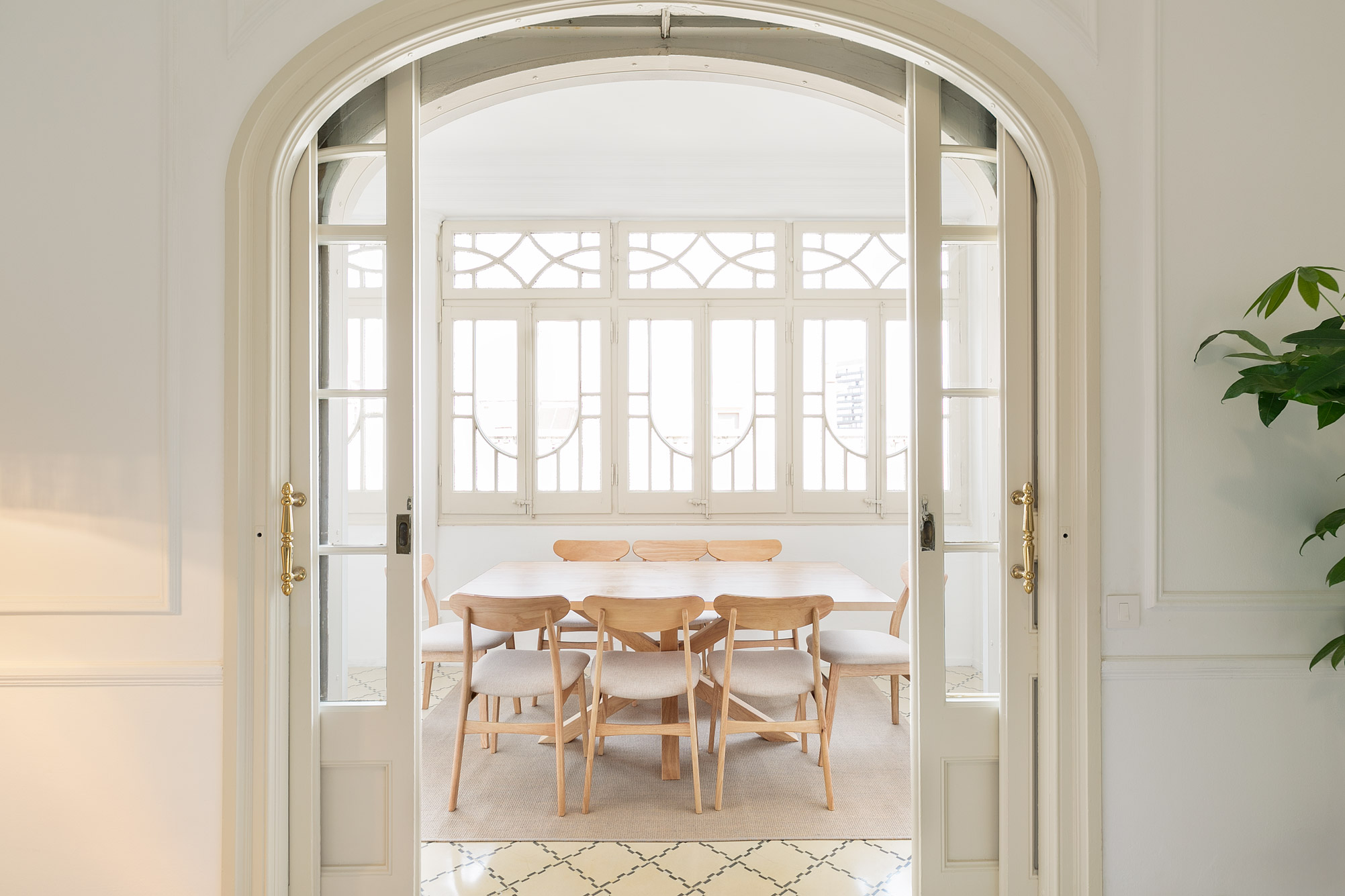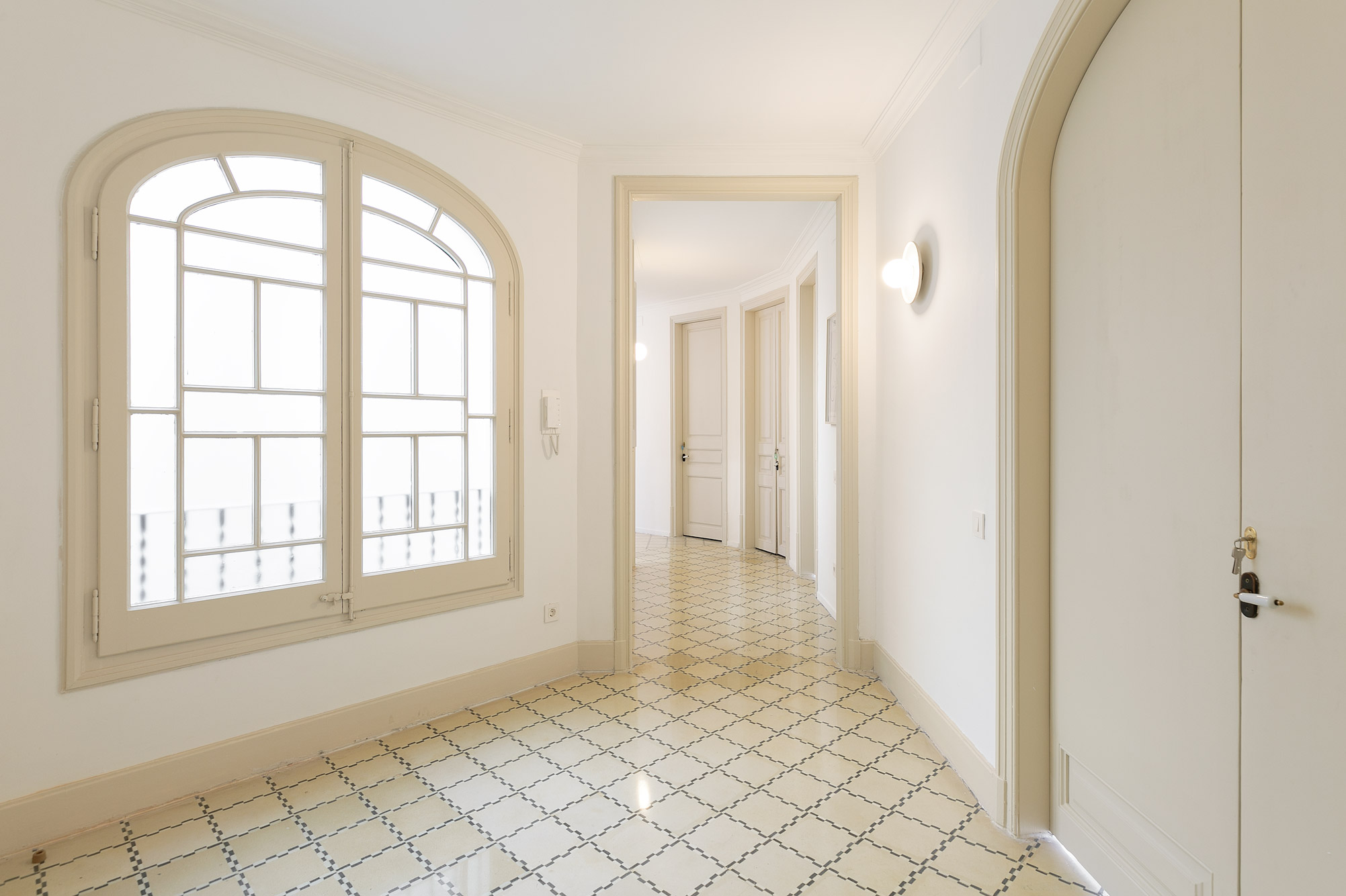 Descubre la esencia de un piso clásico del Eixample barcelonés, con suelos hidráulicos originales, molduras en el techo, puertas de madera y ventanales con bonitas formas que aportan elegancia, estilo y luminosidad.