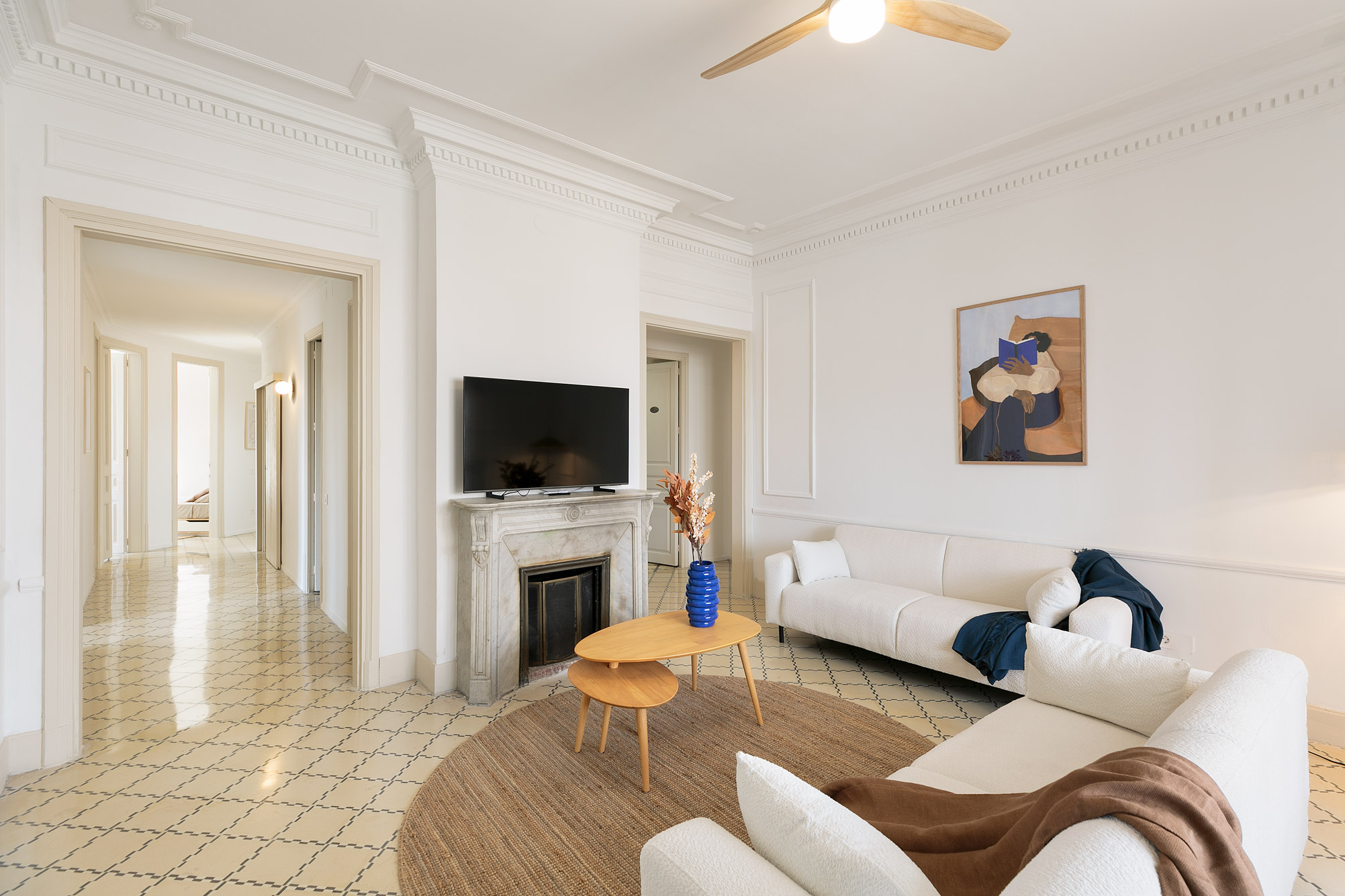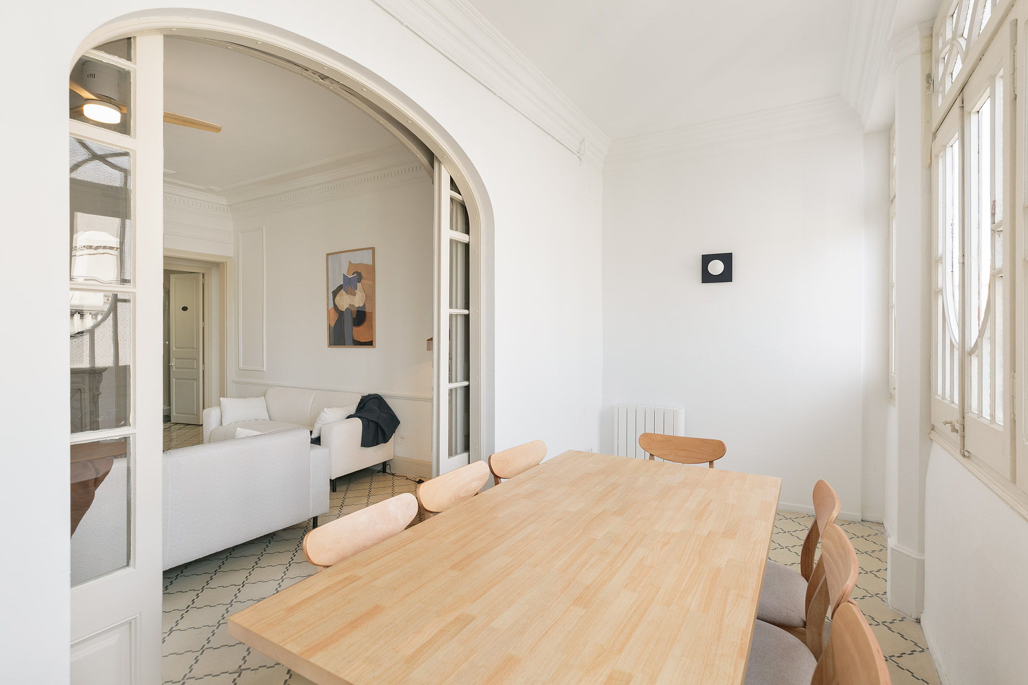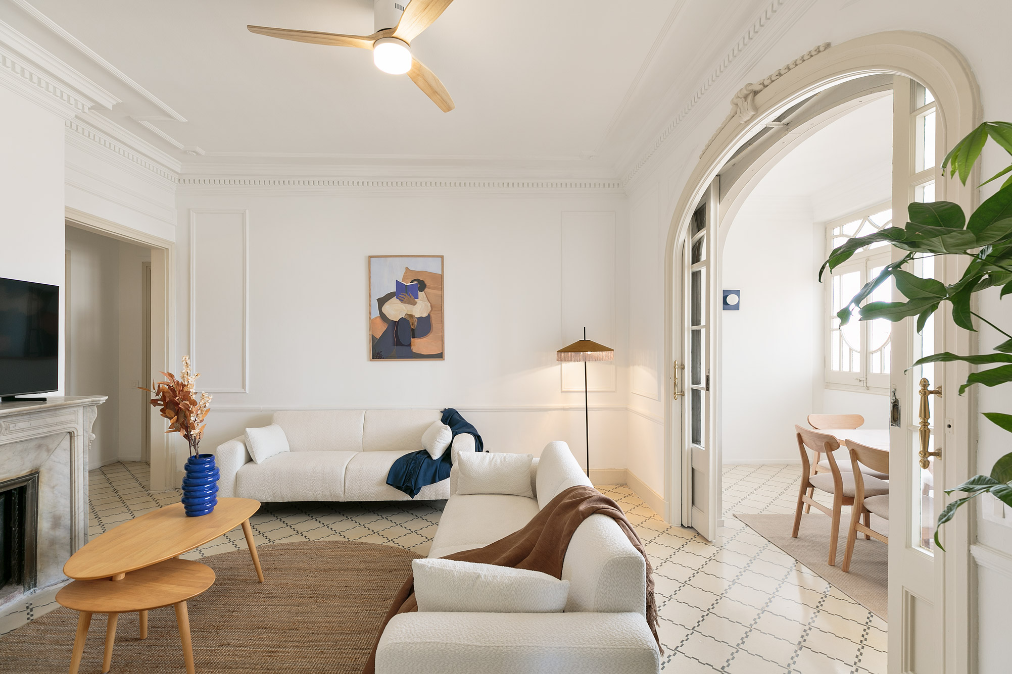 Descubre la esencia de un piso clásico del Eixample barcelonés, con suelos hidráulicos originales, molduras en el techo, puertas de madera y ventanales con bonitas formas que aportan elegancia, estilo y luminosidad.