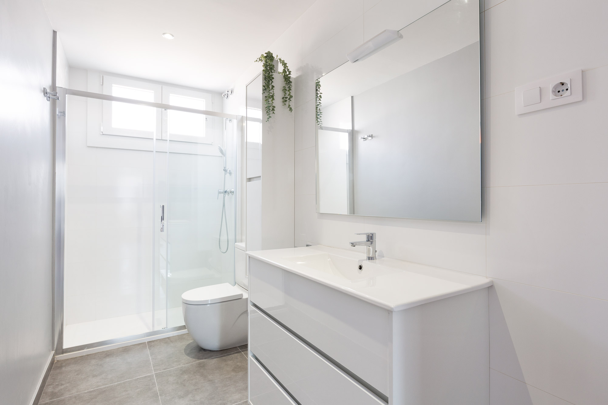 El piso dispone de dos baños completos, ambos con ventilación e iluminación natural, y dos terrazas: una con salida desde el salón-comedor y otra accesible desde la cocina, donde se encuentra la zona de lavandería.